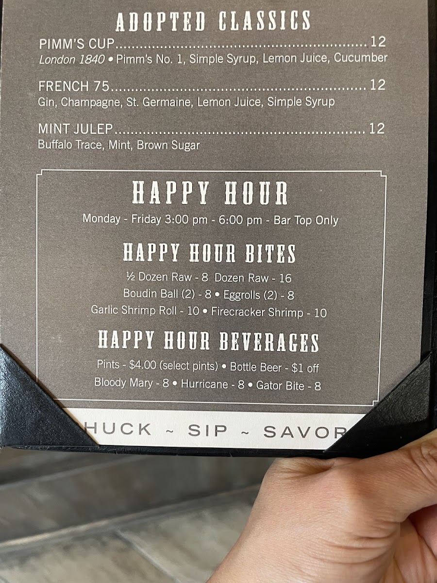 “ Great oysters and gumbo. The chargrilled oysters were our favorite, served with toasted baguette. The kitchen closes at 930, but the bar will stay open a bit longer. The happy hour deals looked good. ”